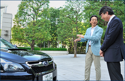 熊谷「気持ちよく安定して走れる、というのがまさにレガシィで狙ったところなので、そこに気づいていただいたのはうれしいですね。実は、二つほど蟹瀬さんにお試しいただきたいことがあるのですが、よろしいですか?」