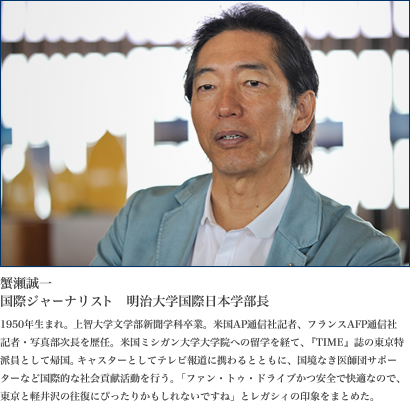 早朝の新宿新都心。ジャーナリストの蟹瀬誠一さんが姿を現した。今回、蟹瀬さんにご登場いただく理由は、以下の二つだ。