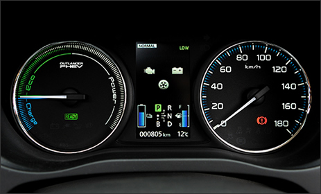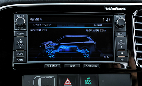 一方、EV走行中に「ただエンジンをブラ下げているのはもったいない」という考え方もあるだろう。アウトランダーPHEVは、全力で加速したいときには、通常のモーター出力に2リッターのガソリンエンジンが加勢して、従来の3リッター車なみの力強さを発揮する。また、高速道路を一定速度で走るような、ガソリンエンジンの効率を引き出せるシチュエーションでは、上手にモーターからエンジンに動力の主役をバトンタッチする。