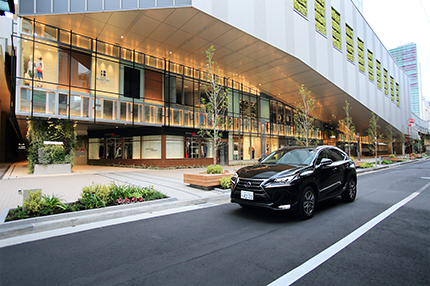 新宿駅南口に誕生した新しい商業施設「NEWoMan(ニュウマン)」と、プレミアムSUVの「レクサスNX」。今回試乗したのは、ハイブリッドモデルの上級グレード「NX300h“バージョンL”」である。