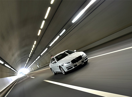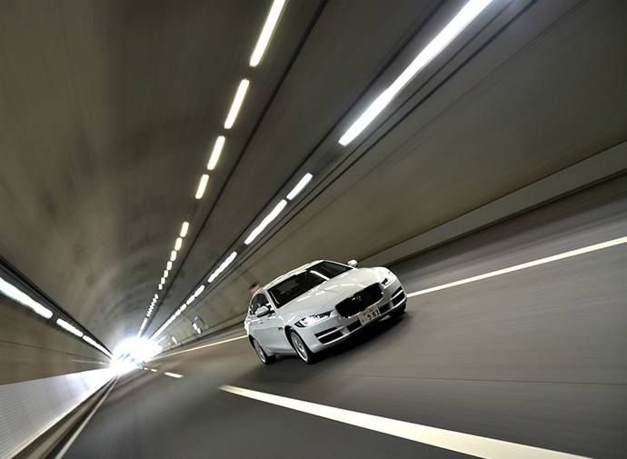 現実の路上でも、実にイージーで速い。きわめて洗練されたパドルシフト付き8段ATとの相性は抜群で、普通に何気なく加速していくとまるで気づかないうちに粛々とシフトアップし、走行車線に落ち着いてみると制限速度を超えそうになっているということが多かった。まったく無理せず、安心して走れる快適速度帯が100km/hよりもかなり高いということだ。トップギアで100km/h巡航時のエンジン回転数はわずか1400rpm強。その近辺での加減速はほとんどキックダウンすることなく、するとしてもせいぜい2000rpm程度までしか回す必要がない。ちょうど新東名など一部高速道路の制限速度引き上げが話題になっているが、イージーで快適で速いXE 20dはそんな舞台で真価を発揮するはずだ。