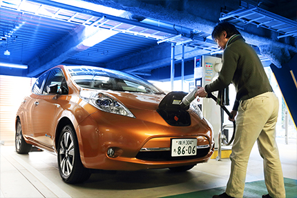 日産自動車グローバル本社のほか、全国の日産ディーラーに数多くの急速充電器が設置されている。取材当日も一般の方の「リーフ」が何台も立ち寄り、写真のようにカードをかざして充電する様子が見受けられた。