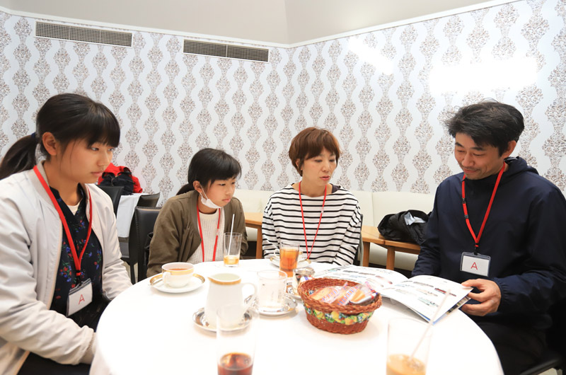 藤原さん夫妻は、ひと目で「ムーヴ キャンバス」が気に入ったよう。娘さんたちもうなずいている。