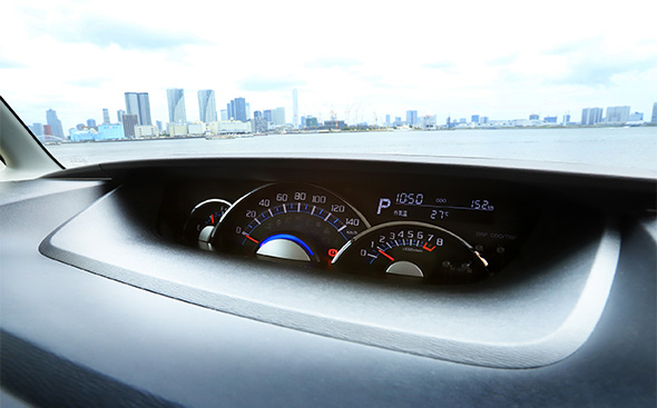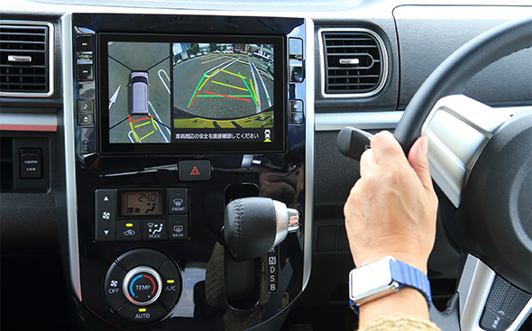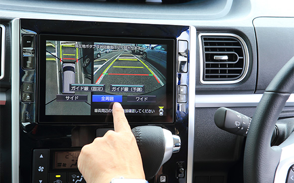 またRS“トップエディションリミテッド SA III”には、通常はオプションとなっている「パノラマモニター」が標準装備される。モニターにクルマの周囲を上方から見下ろすような映像が映し出されるので、狭い道のすり抜けや車庫入れなどで非常に重宝する。セレクターを「R」に入れると自動的に映像が映し出されるが、モニター内の「カメラ」というスイッチを押すことで作動させることも可能だ。日常生活で役立ちそうだと思ったのが「フロントワイドビュー」。路地から広い道に出るときなど、死角になっている場所の様子を見せてくれるから安心して発進することができる。