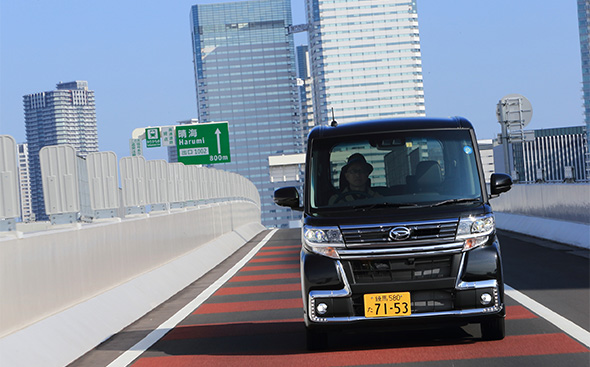 足まわりもしっかりしたものだ。コーナリングでふらつくようなそぶりは見られず、高速道路の長いカーブでも安定した走りを披露する。これなら、ドライバーだけでなくほかの席の乗員も不快な思いをすることはないだろう。いまだに「遠出が苦手」なイメージのつきまとう軽自動車だが、少なくともこのタントカスタムなら、それも十分快適にこなしてくれるはず。ご近所専用のセカンドカーとしてはもちろんのこと、週末の遠出にも使えるファーストカーとしての素質を、このクルマは備えている。