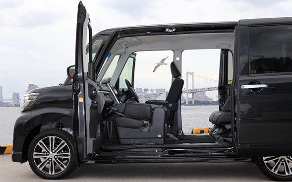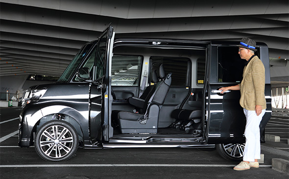パワースライドドアはドアハンドルだけでなく室内のスイッチや電子カードキーでも操作することができる。ヘタなミニバンより操作が便利で実用的だ。もちろん、大開口でも安全性に問題はない。前後のドアに内蔵されたピラーによって、閉めれば十分な強度が確保されるからだ。見えないパーツが重要な役割を果たしているのは、まさにミラクルといえる。