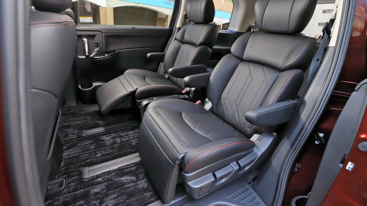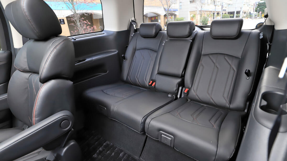 運転を交代して、2列目シートを試す。スペース的に広いのは当然ながら、掛け心地のよい余裕あるサイズのシートや大型のオットマンでリラックスすることができた。前述したように先進安全技術が充実しているから、誰がハンドルを握っていても安心だ。例えば家族で自動車旅行に出かけた場合、お父さんが後席でくつろぐ機会が増えるかもしれない。運転席で感じた安定感は後席でも変わらず、走りのよさは後席の居心地のよさにもつながるという新たな発見もあった。