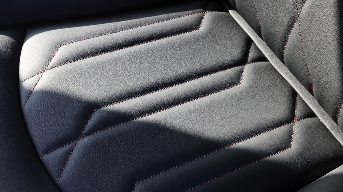 インテリアに目を移せば、滑らかな手触りと色艶を持つ本革と、厚みのあるキルティングを組み合わせたシートが目を引く。ハンドルやドアトリム、シフトノブなどに施されるブルーのステッチも同様だ。細部にまでおもてなしの趣向が凝らされているあたり、車内というよりラウンジという表現を使いたくなる。