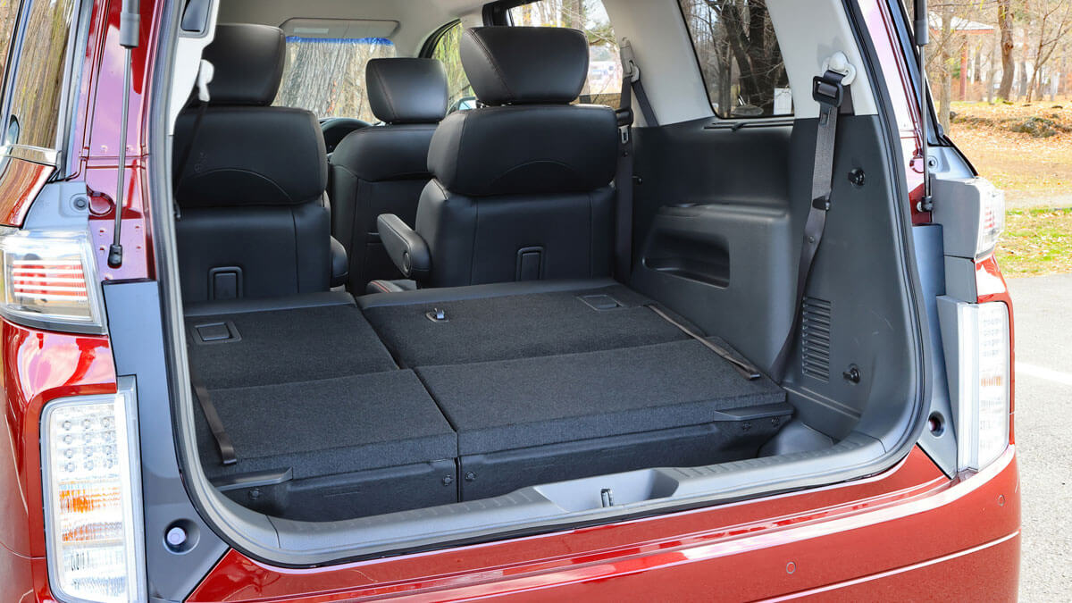 可能な限りエンジン搭載位置を低くし、また燃料タンクを極限まで薄くし、床下に配置することで重心を低くしたエルグランドは、乗り降りが楽なミニバンでもある。「よっこらしょ」とならずに、腰を水平移動するだけですっと運転席に腰掛けることができる。