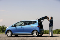 テスト車の「RSリミテッド」は最上級グレード。エクステリアにはサイドストーンガード、ドアミラーターンランプ、フロントフォグランプなどを装着。インテリアにはオーディオコントロールなどのスイッチが配されるMOMO製ステアリングホイールが採用される。さらに、RSリミテッドのみATセレクターがゲート式となり、7段のアクティブシフトも備わる。タイヤは15インチとなり、大径フロントベンチレーテッドディスクブレーキが奢られる。