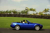 生真面目な三代目 2005.06.30 試乗記 マツダ・ロードスター(6MT)(北米仕様車) 日本発売が待ち遠しい新型マツダ「ロードスター」。南国ハワイで試乗した『NAVI』編集長の高平高輝は、「文句なし!」と絶賛するが、ちょっと残念なことも……。基本は変わらない