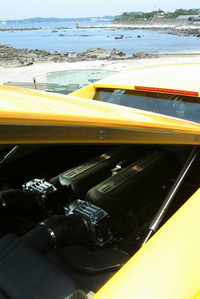 30cm短い全長、約15cm狭いボディ幅と、一見しての“はったり度”では兄貴分“ムルシー”こと「ムルシエラゴ」に差をつけられる「ガヤルド」。だが、やっぱりこのクルマも絵に描いたようなスーパーカーだ。なにしろ、ルックスが“コレ”なのだから。