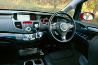 キャビンに乗り込んでも驚きは続く。ダッシュボードまわりのデザインが何とも“ミニバン離れ”したものだからだ。立体的なデザインのメーターやガングリップタイプのATセレクター、「プログレッシブコマンダー」と名付けられたナビゲーションシステムの操作スイッチ類など、すべてが大胆でアグレッシブなデザイン。