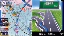 高速道路のルート案内は特に目新しいものではないがシンプルな案内は、ひと目画面を見るだけで確実に進行方向や出口名等がわかる。このような画面案内は、なるべく多くの情報を伝えようと、さまざまな情報を盛り込みがちだが、イクリプスのそれは必要な情報に絞ってシンプルに表示。このような表示のほうが、瞬時のわかりやすさは高いし、確実にルートに沿ったドライブができそうだ。という意味ではよく考えられた案内といえよう。高速道路走行中に出るハイウェイモードも、余計な装飾がなくシンプル。少々色味が寂しい感じではあるが、SAやPA内の施設の情報など、必要な情報はしっかりと伝わってくるし、どの区間が渋滞しているのかもわかる。