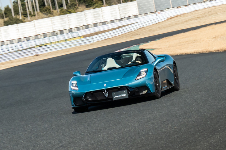 名門はしぶとい 2026.02.18 試乗記 かつて「マセラティの新時代の幕開け」として大々的にデビューした「MC20」がマイナーチェンジで「MCプーラ」へと生まれ変わった。名前まで変えてきたのは、また次の新時代を見据えてのことに違いない。オープントップの「MCプーラ チェロ」にサーキットで乗った。純エンジンのプーラ