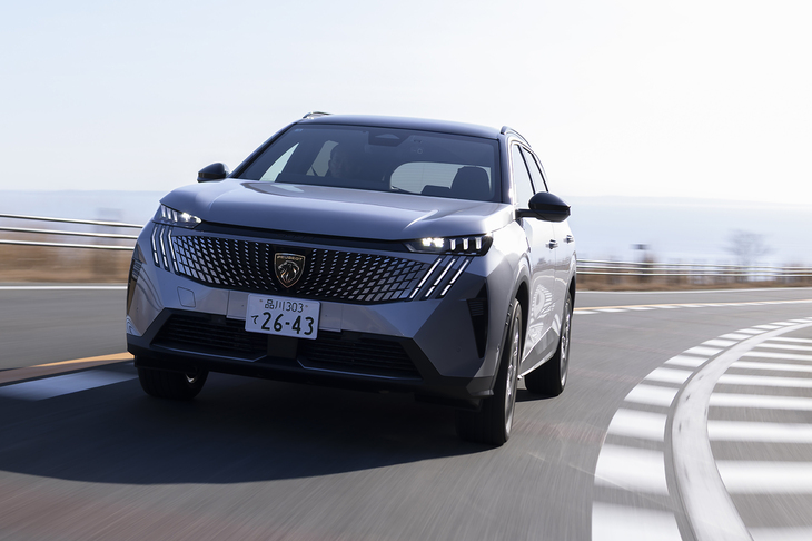 新型「プジョー5008」は第3世代。国内でのラインナップは基本的に「GTハイブリッド」のみで、それにアルカンターラのシート表皮を加えた豪華版が「GTハイブリッド アルカンターラパッケージ」(今回の試乗車)だ。
