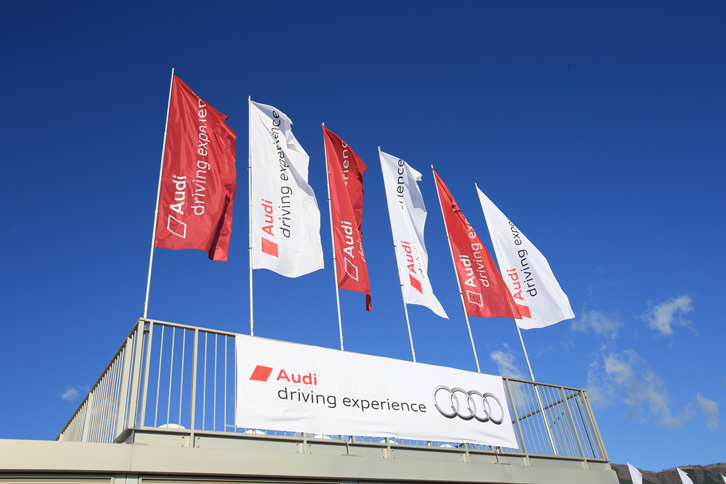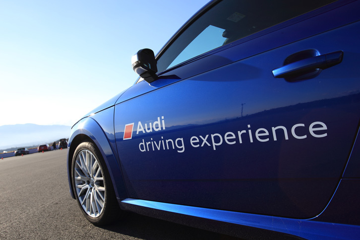 14/17会場に並べられたセミナー用の車両。なお実際のセミナーは、「アウディドライビングエクスペリエンス」についてはアウディが用意した車両で、「アウディレースエクスペリエンス」については参加者のマイカーで行われる。