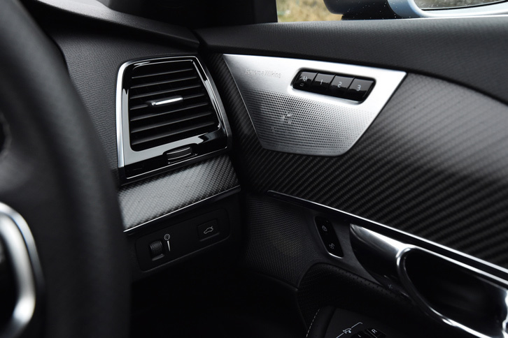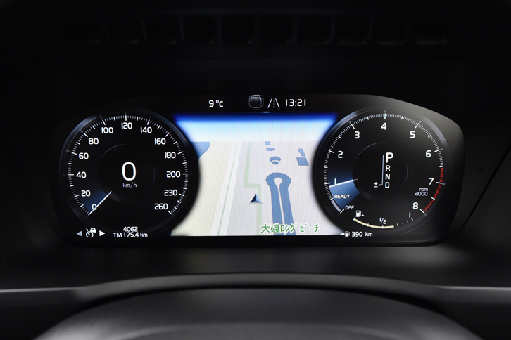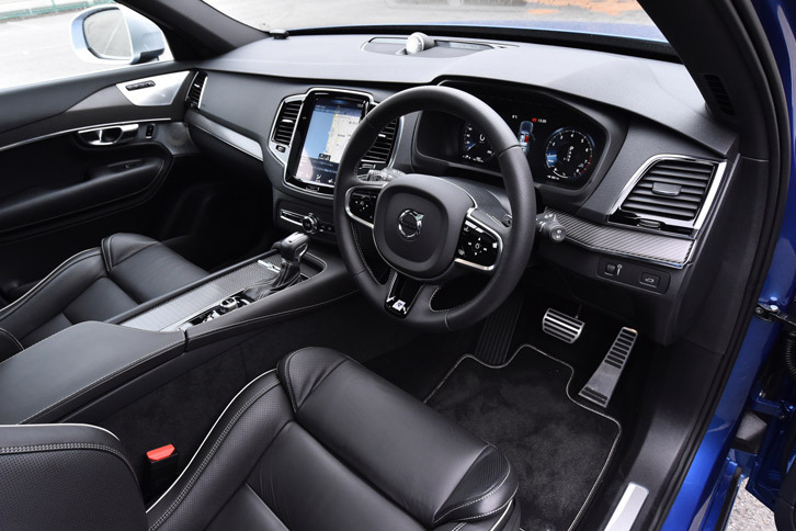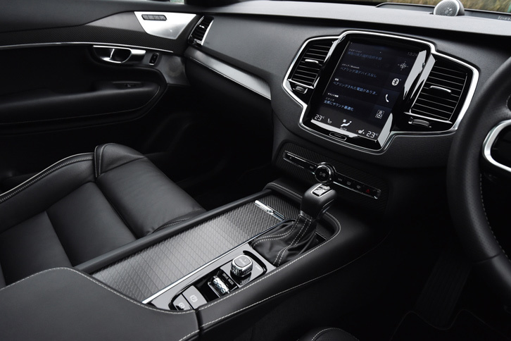 5/43「XC90 T6 AWD R-DESIGN」のインストゥルメントパネルまわり。他のグレードには「アンバー」と「チャコール」のツートンなども用意されるが、R-DESIGNの内装色はチャコールのモノトーンのみとなる。