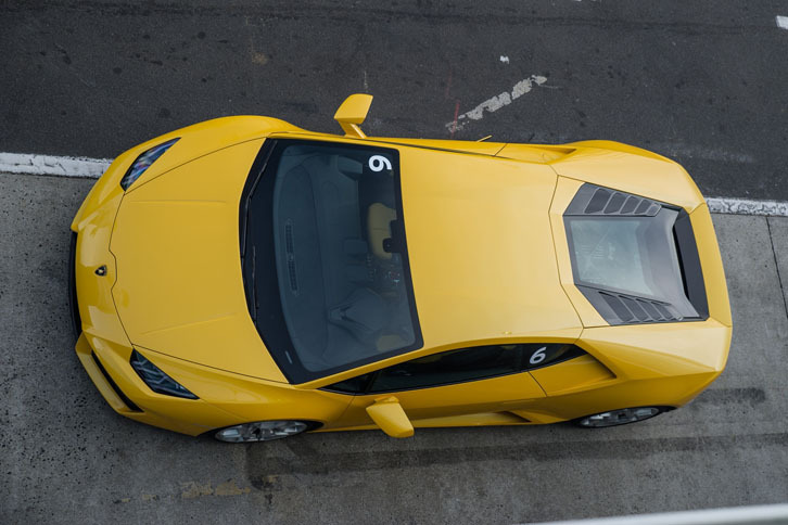 2/19試乗の舞台はオーストラリア・メルボルン郊外のフィリップアイランド・サーキット。ピットレーンに色とりどりの「ウラカンLP580-2」が並ぶ。