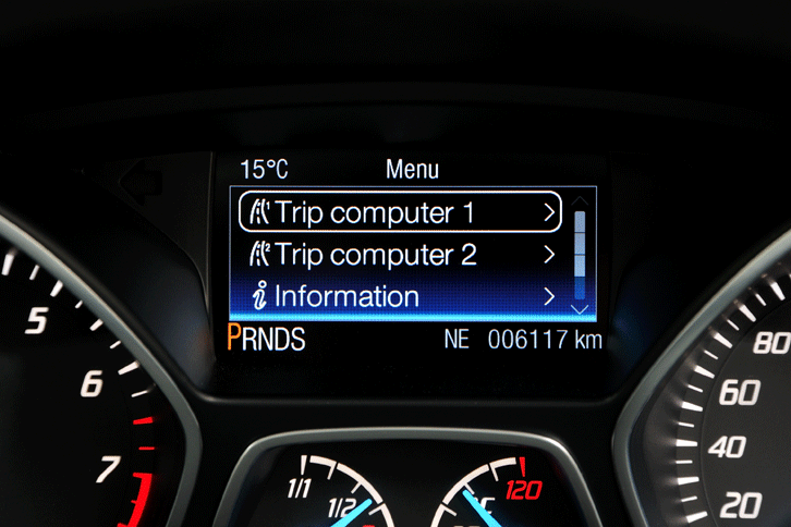 2/18「フォード・クーガ」のインテリア。ステアリングホイールとシフトセレクターは全車本革巻きとなる。