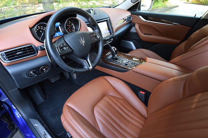 2/42「マセラティ・レヴァンテ」のインストゥルメントパネルまわり。内装色は黒が標準だが、オプションでブラウンやベージュなどの有彩色や、ツートンカラーも選べる。