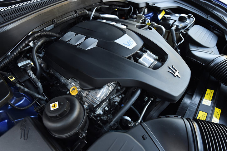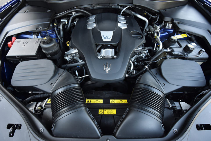 11/42「レヴァンテ」に搭載される3リッターV6ツインターボエンジン。350ps/5750rpmの最高出力と、51.0kgm/4500rpmの最大トルクを発生する。