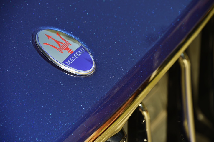 3/42フロントシートのヘッドレストには、マセラティのエンブレムがエンボス加工で施されている。