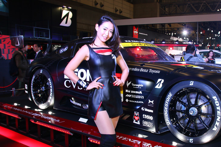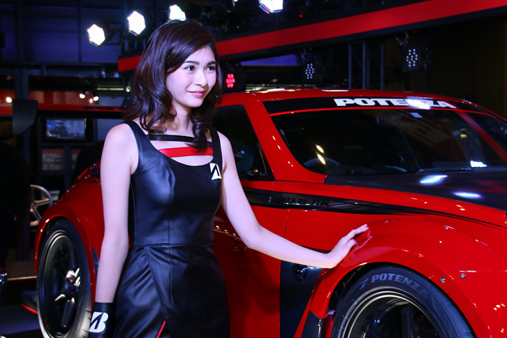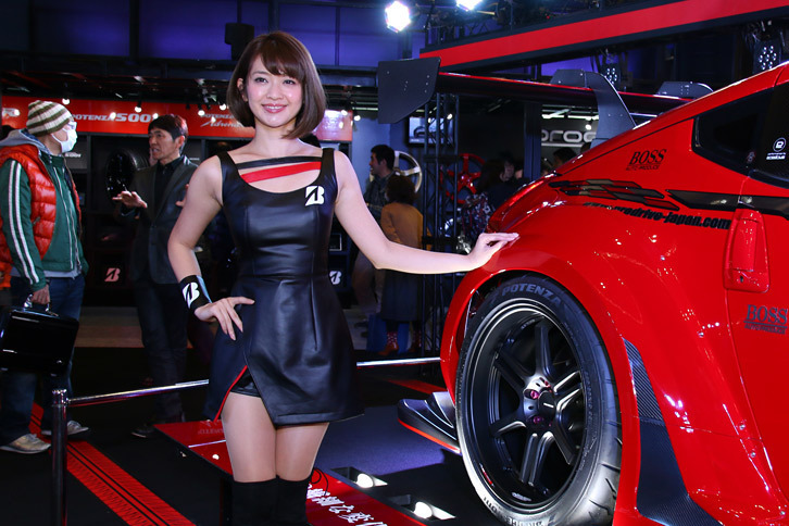 2017.01.13 画像・写真年明け恒例のイベント、チューニングカーやドレスアップカーの祭典「東京オートサロン2017」。コンパニオン名鑑では、各ブースでクルマを引き立てるコンパニオンの姿を写真で紹介する。こちらは、ブリヂストンのブースから。