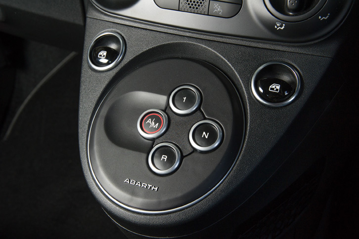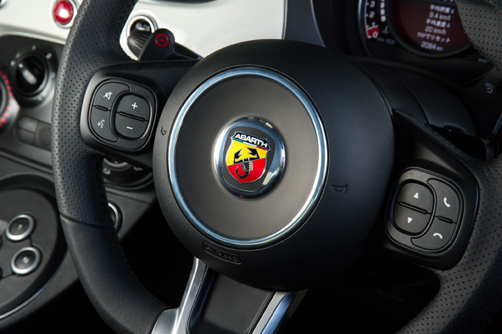 5/35「アバルト595」には5段MT仕様と5段セミAT仕様が用意されている。今回は後者に試乗した。