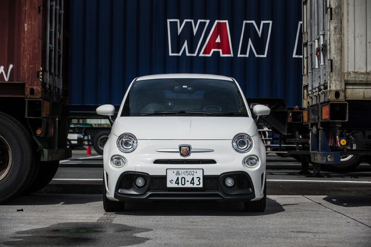 2/35「アバルト595」のフロントマスク。よりワイド感を強調した意匠のバンパーが、従来モデルとの大きな違いだ。