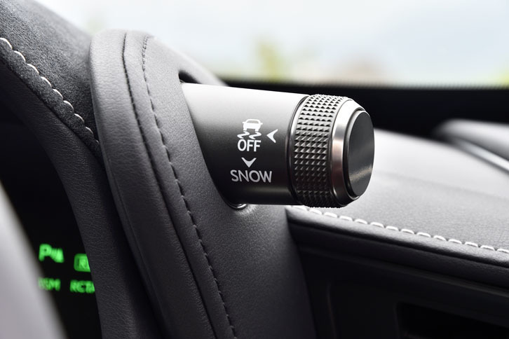 5/343方向に伸びたフルLEDのリアコンビランプが特徴的なリアビュー。試乗車のボディーカラーはホワイトノーヴァガラスフレーク。