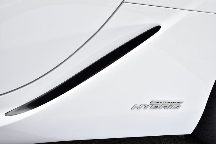 19/34リアホイールアーチの前方に貼られた「MULTI STAGE HYBRID」のバッジ。