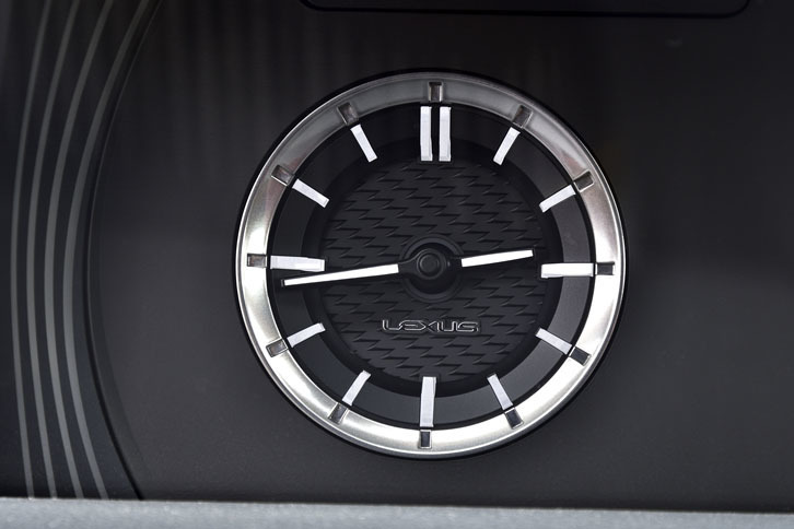 16/34「LFA」の可動式メーターリングを継承する、8インチのカラーTFT液晶メーターが採用されている。(クリックするとメーターリングがスライドする様子が見られます)