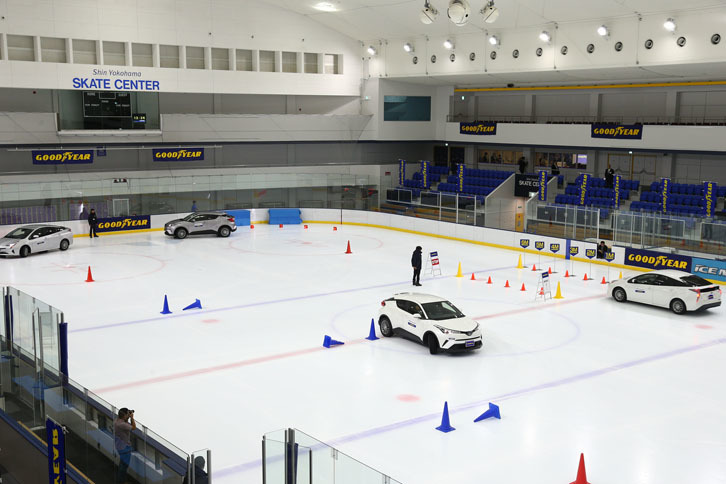2/5「アイスナビ7」を装着した「トヨタ・プリウス」でコーナリング性能をテスト。「アイスナビ6」を履いた車両よりもスピードに乗ったコーナリングができた。
