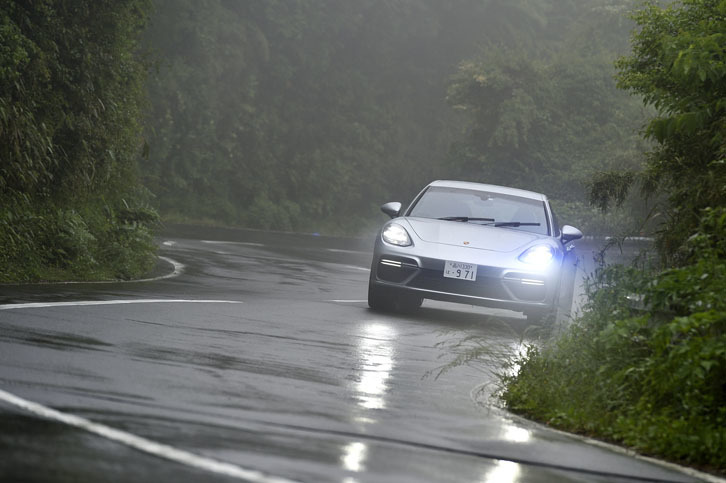 9/17新型「パナメーラ」シリーズには、後輪操舵機構「リアアクスルステアリング」や3チャンバー式エアサスペンション、電気機械式ロール制御システムなどの新機軸が盛り込まれている。