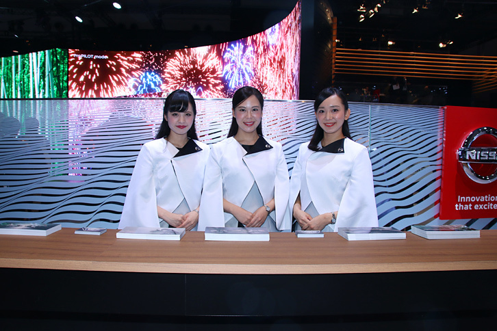 2017.10.25 画像・写真2017年10月25日のプレスデーで幕を開けた第45回東京モーターショー。コンパニオン名鑑では、各ブースでクルマを引き立てる彼女たちの姿を写真で紹介する。東ホールの日産、スバル、三菱のブースから。