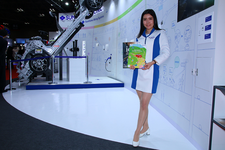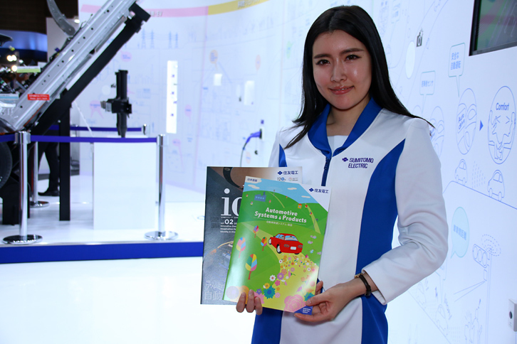 2017.10.28 画像・写真2017年10月25日のプレスデーで幕を開けた第45回東京モーターショー。コンパニオン名鑑では、各ブースでクルマを引き立てる彼女たちの姿を写真で紹介する。東ホールの部品・機械器具エリアから。