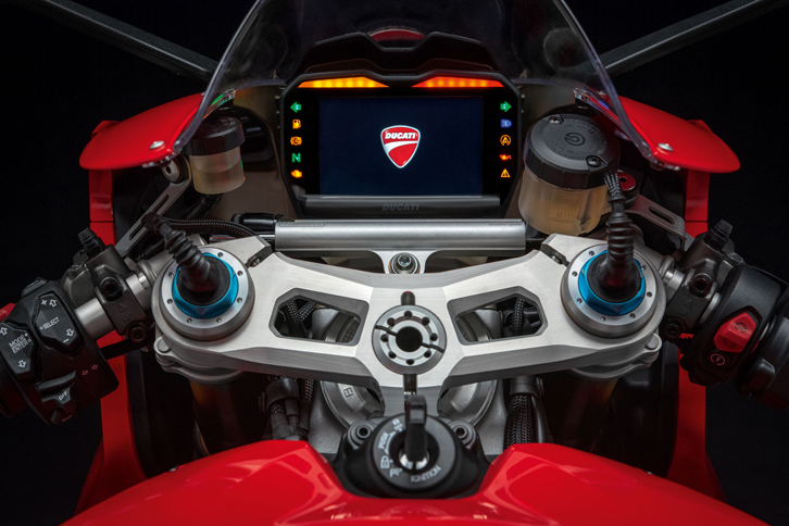 10/13「ドゥカティ・パニガーレV4 S」には、車体を傾かせるコーナリング状態でもABSが働く、ボッシュ製の「コーナリングABS EVO」が搭載されている。