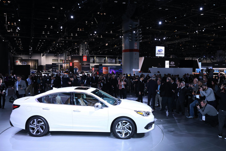15/182019年のシカゴモーターショーにて、カメラの集中砲火を浴びる新型「レガシィ」。