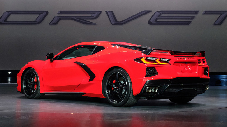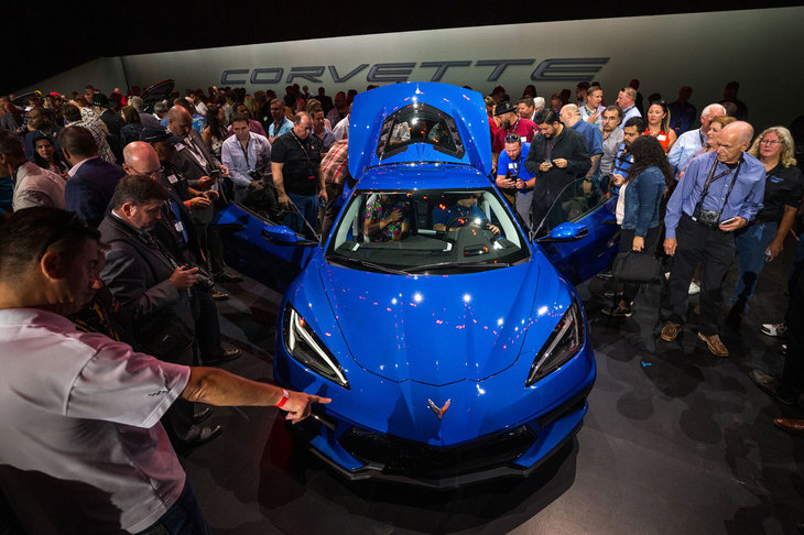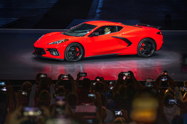 1/6新型「シボレー・コルベット ステイングレイ」とゼネラルモーターズのマーク・ロイス社長。