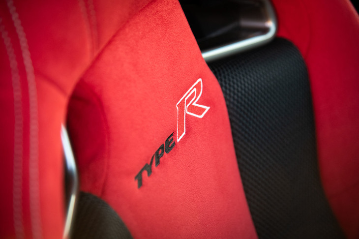 4/25赤と黒のツートンカラーが目を引く「タイプR」専用のスポーツシート。高いホールド性の確保に加え、幅広い体形の人が適切な運転姿勢をとれるよう、調整幅も大きく取られている。