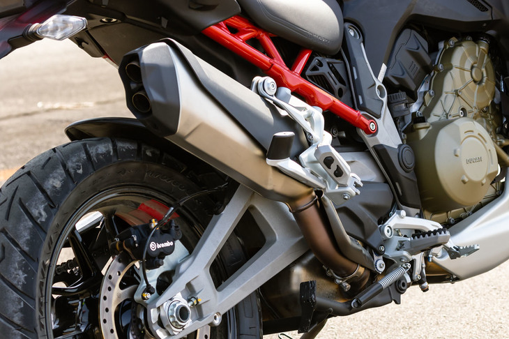 2/172021年3月に発売されたばかりの「ムルティストラーダV4」。従来モデルのイメージを踏襲しつつ、エンジンの造形やサイドカウル下方に備わる空力パーツなどにより、ひと目で「新しいモデルだ」とわかる。