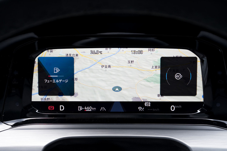 3/22インテリアでは操作インターフェイスのデジタル化が大きなトピック。ステアリングスイッチを除き、電装系の操作はほとんどがタッチパネル式となった。