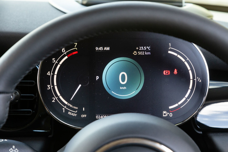 8/21「ONE」以外のグレードに装備されるマルチディスプレイメーターパネル。一見フルデジタルに見えるが、左のエンジン回転計は実は機械式である。