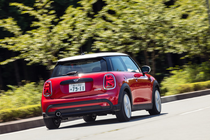 5/21より立体的となったバンパー下部のデザインが目を引くリアビュー。今回は中間グレードの「クーパー」に試乗した。
