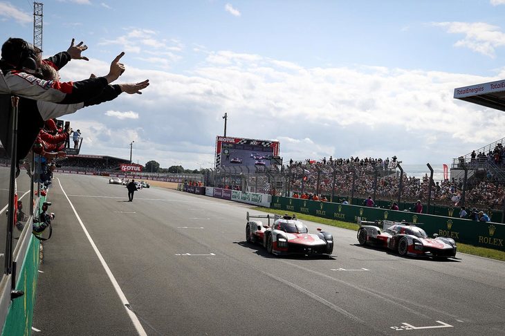 1/6優勝を喜ぶマイク・コンウェイ選手(左)と小林可夢偉選手(中央)、ホセ・マリア・ロペス選手(右)。