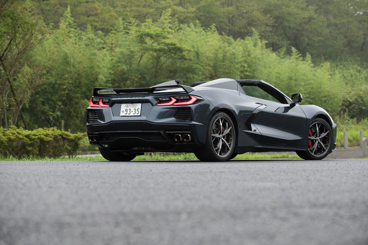 2/29ミドシップの駆動レイアウトに、デュアルクラッチ式ATやコイルサスの採用と、従来モデルから全面刷新された8代目「シボレー・コルベット」。「コンバーチブル」は「クーペ」ともども、2021年5月に日本でのデリバリーが開始された。