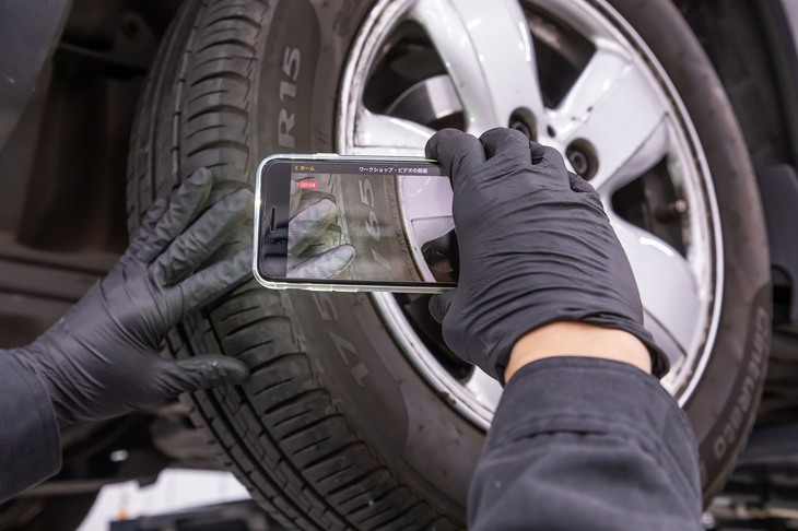 14/28タイヤの点検状況も動画で記録。愛車のコンディションが理解できるうえ、メンテナンスの記録にもなると顧客からの評判も上々だという。