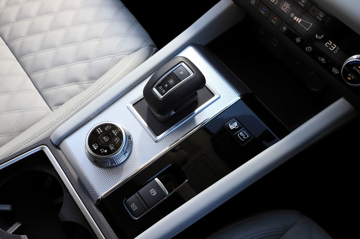 7/30ドライブモードセレクターには、オンロード向けの「NORMAL」「POWER」「ECO」「TARMAC」と、オフロード向けの「GRAVEL」「MUD」「SNOW」の、全7種類もの走行モードが用意される。