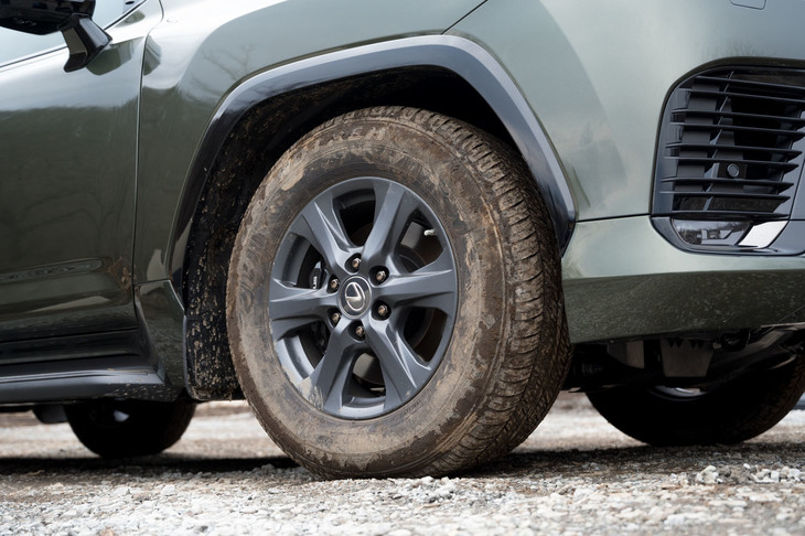9/36より悪路走破性を高めた「LX600“オフロード”」。専用の18インチホイールや、ブラック塗装のグリルとアーチモールなど、外観でも他グレードとの差異化が図られている。